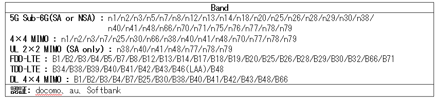 認証 | 認証取得:TELEC、JATE、(WiFi:TBD) |