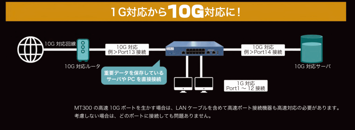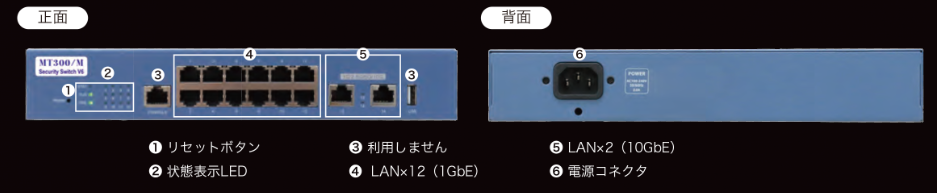I/F | 最大ポート数 | 14(10/100/1000Base-TX×12、1G/2.5G/5G/10GBase-T×2) | ||