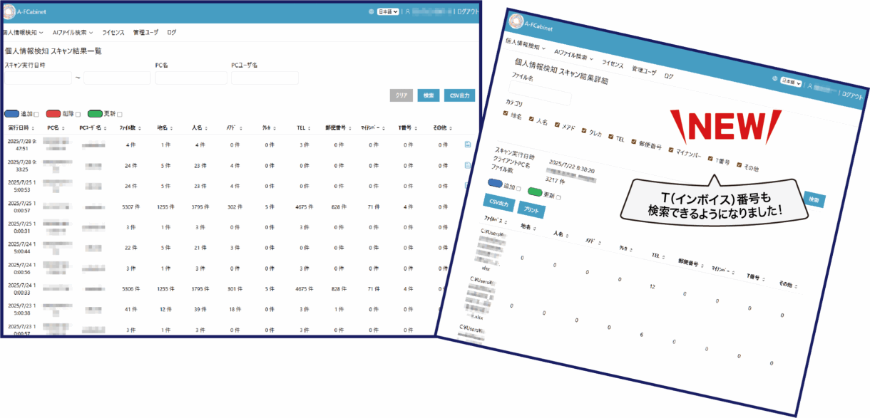 | 検索カテゴリ | 人名、メールアドレス、クレジットカード番号、電話番号、郵便番号、マイナンバー、地名、T(インボイス)番号、その他 | |||